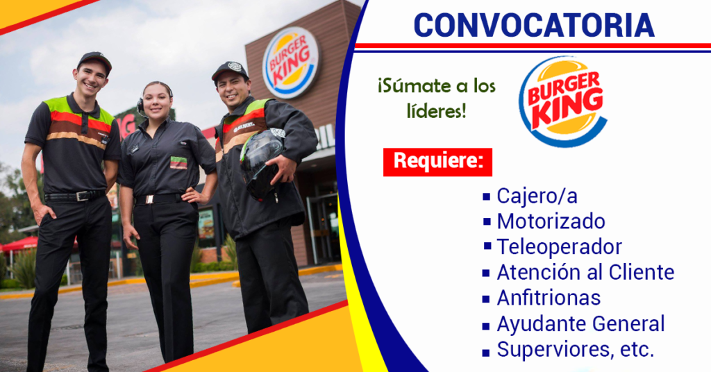 Esta es tu oportunidad de unirte al mejor equipo de trabajo Burger King, actualiza tu Cv y postula aquí