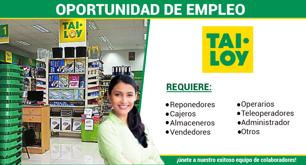 Si estás interesado en aplicar a alguna vacante de esta prestigiosa empresa TAI LOY, puedes hacerlo enviando tu postulación AQUÍ